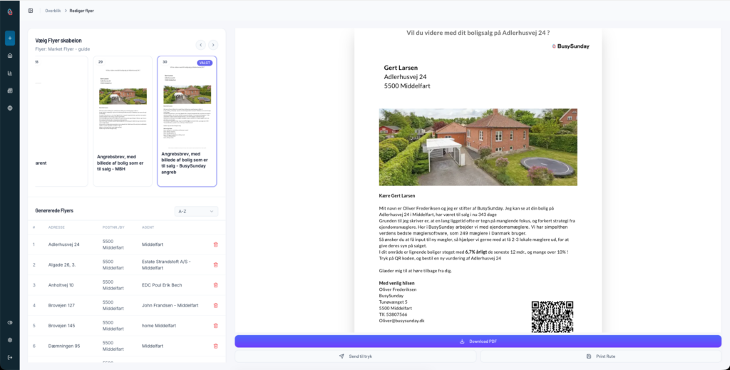 Giver dig mulighed for manuelt at udvælge de boliger, du ønsker at inkludere. - Generer flyers